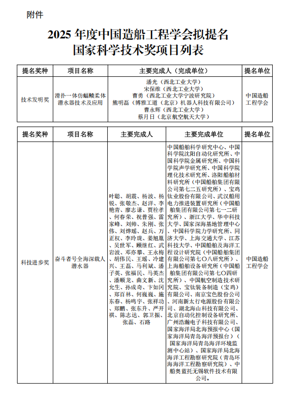 中国造船工程协会拟提名2025年度国家科学技术奖