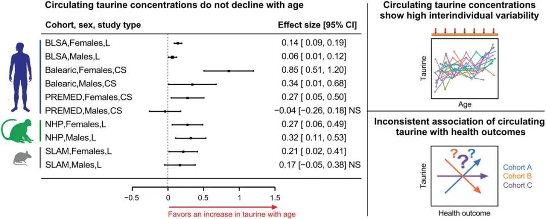 然而,2025年6月5日,美国国立卫生研究院国家老龄化研究所的研究团队在同一期刊发表了题为“Is taurine an aging biomarker?”的文章,直接质疑了2023年所发表文章的结论,对牛磺酸作为一种衰老生物标志物及其作为膳食补充剂的用途提出了疑问。