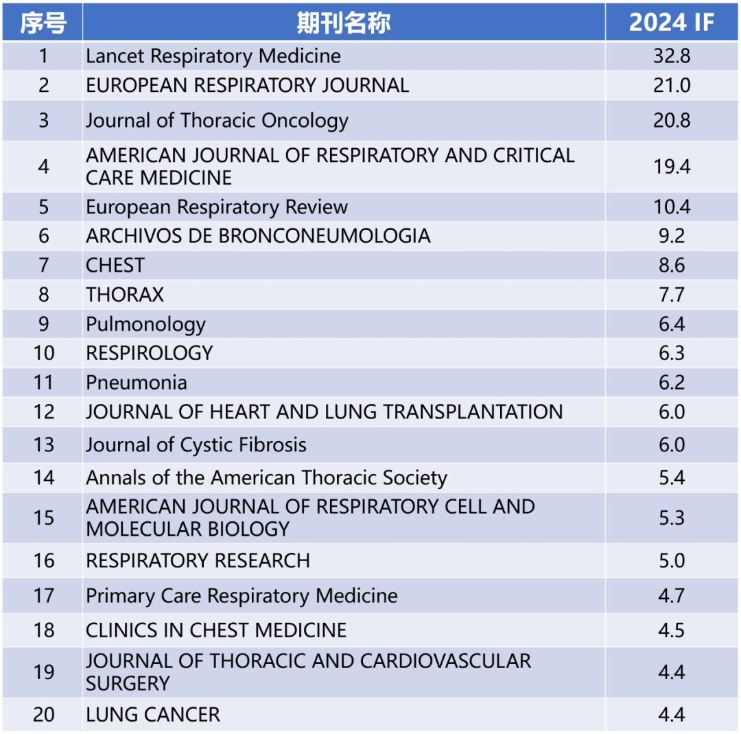 呼吸学科TOP 20