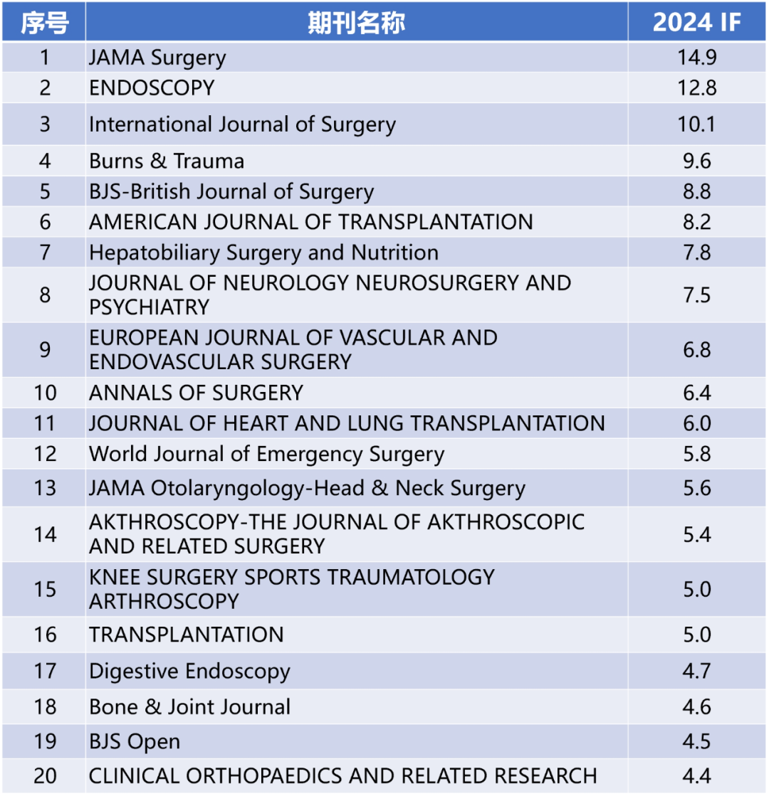 外科学TOP 20