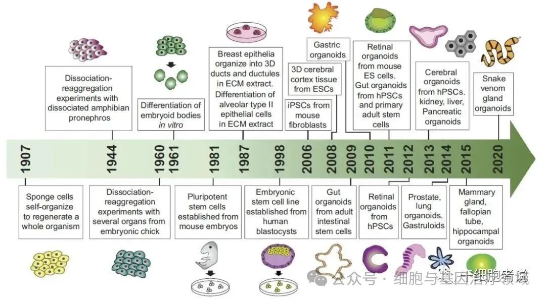 2011年,由人多能干细胞和原代成体干细胞发育而来的肠类器官被成功制作。同年,由鼠胚胎干细胞培育而来的视网膜类器官被首次成功培育。