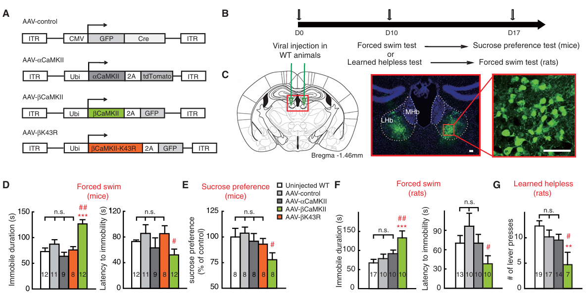 1. Science,论文题目βCaMKII in Lateral Habenula Mediates Core Symptoms of Depression,锁定抑郁核心调控分子,βCaMKII 成抗抑郁关键靶点