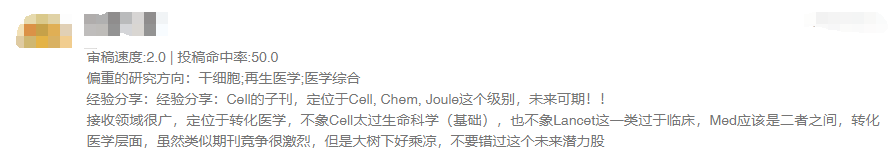 接收领域很广,定位于转化医学,不像Cell太过生命科学(基础),也不象Lancet这一类过于临床,Med应该是二者之间,转化医学层面,虽然类似期刊竞争很激烈,但是大树下好乘凉,不要错过这个未来潜力股