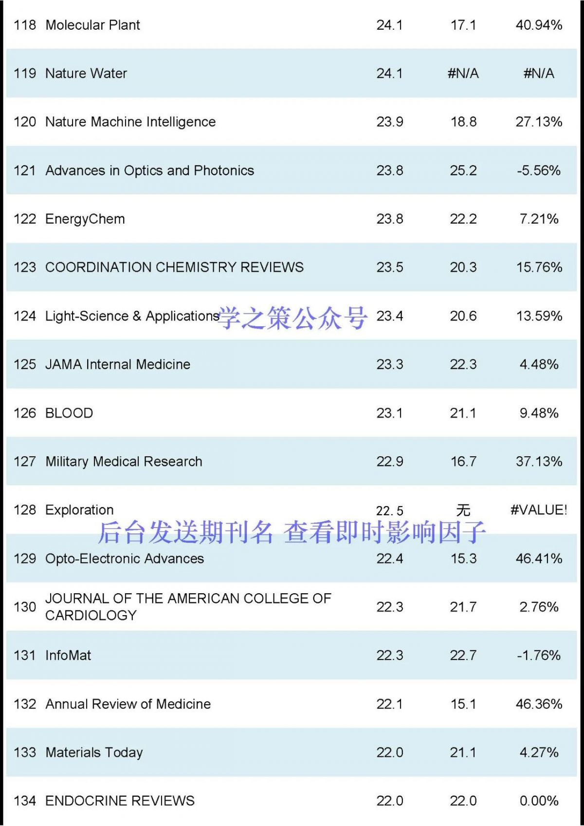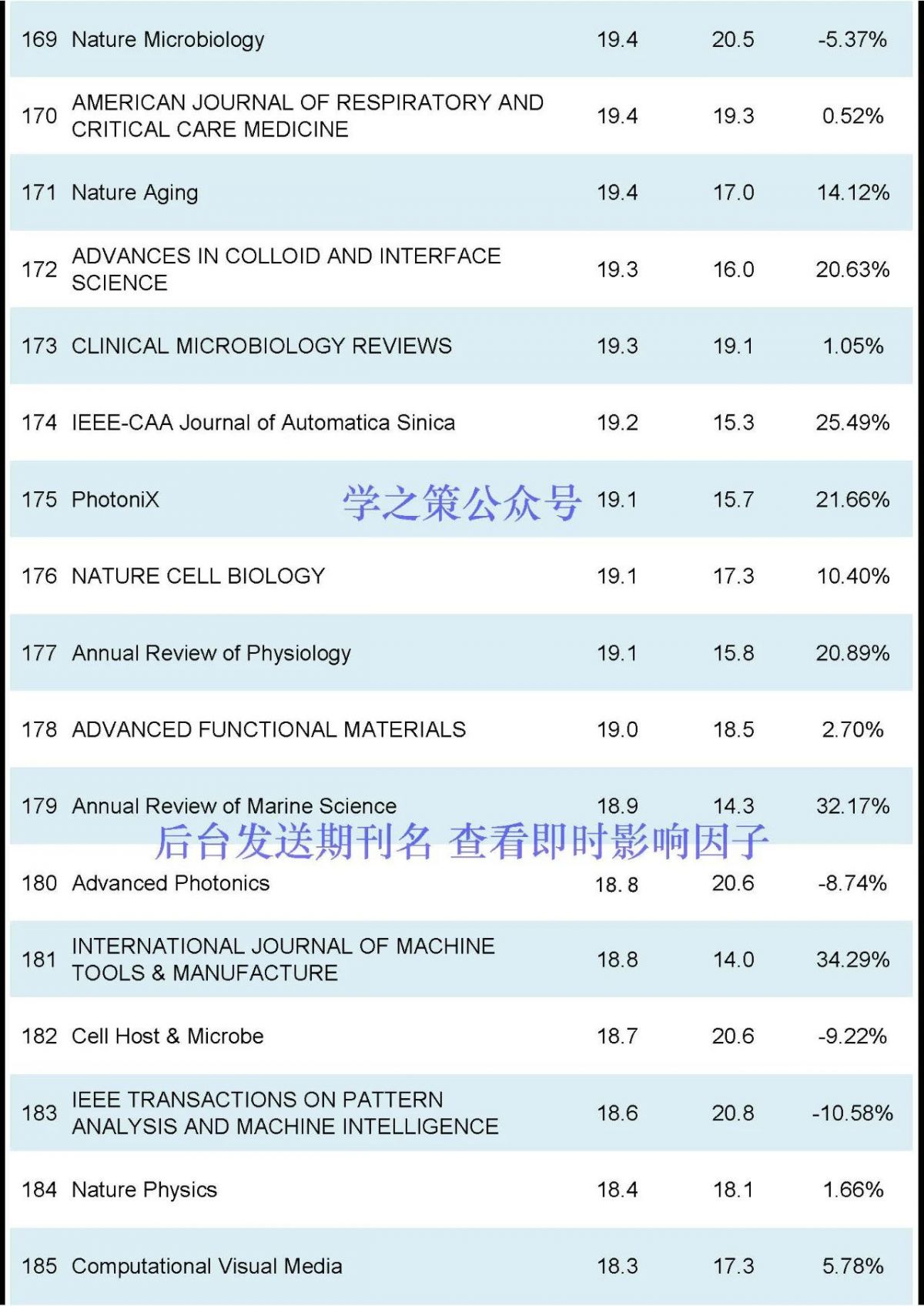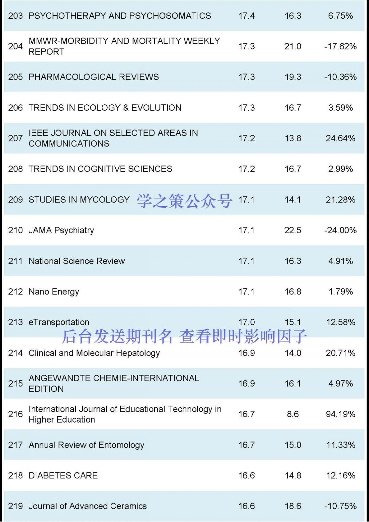 CA-A CANCER JOURNAL FOR CLINICIANS的IF腰斩,但凭借232.4的高分仍然高居榜首。其次是两本Nature综述子刊。