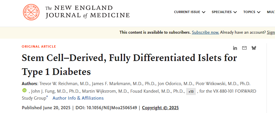 NEJM 重磅!Zimislecel 改写1型糖尿病治疗,2026 可期