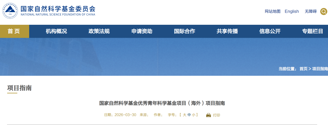 基金委:优青(海外)项目指南发布!